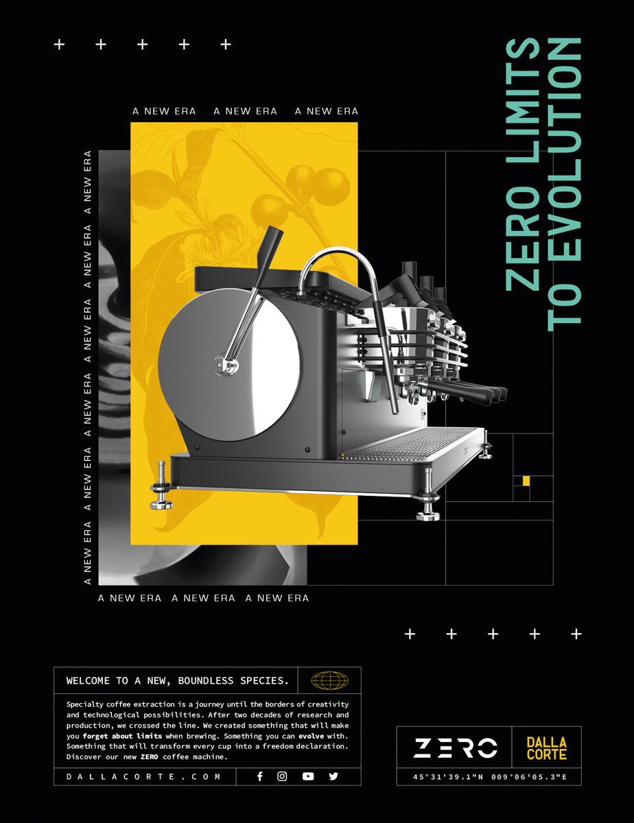 We created the ADV launch campaign of the latest and most powerful Dalla Corte espresso coffee machine: the ZERO. In line with the ADV creative concept, we also developed the product-related merchandising, the technical equipment pack and a welcome pack for all the new ZERO owners.